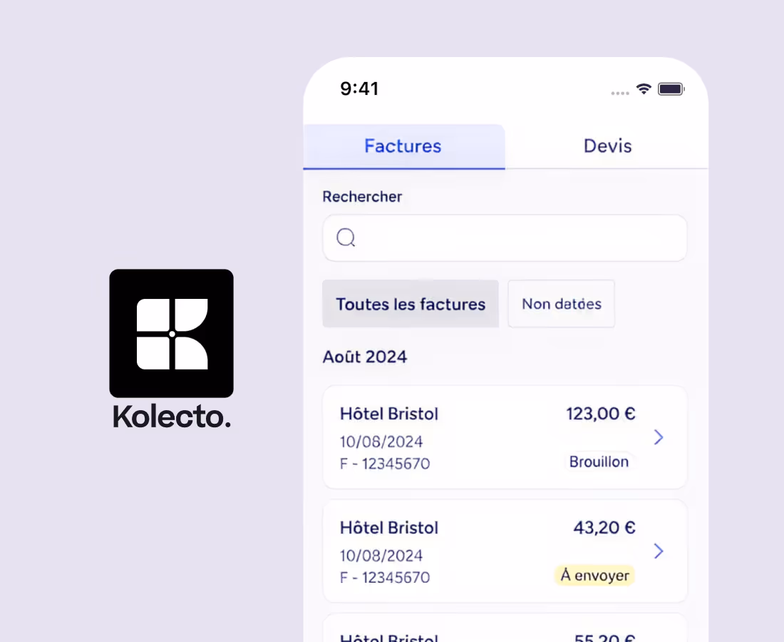 Centralisez vos factures et suivez vos encaissements avec un accès à Kolecto, outil de gestion conforme à la facturation électronique.