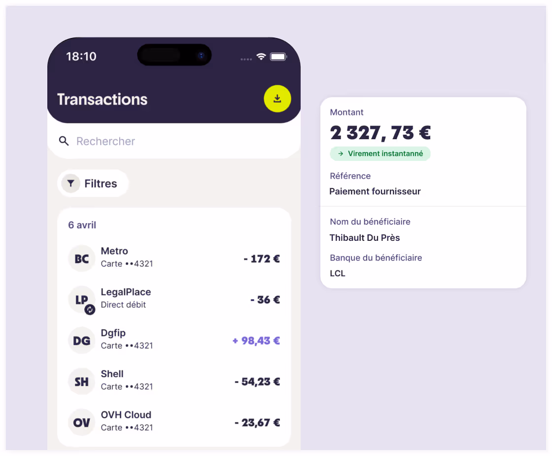 Suivez vos transactions en temps réel. Gérez vos dépenses et maîtrisez votre trésorerie.