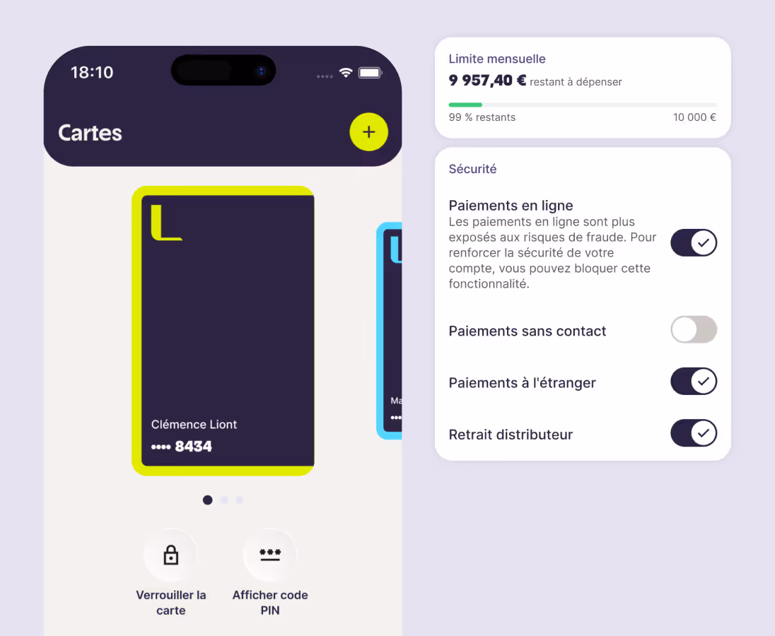 Commandez et gérez vos cartes bancaires, physiques ou virtuelles, depuis l’application.
